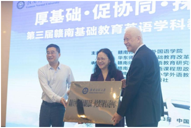 本次论坛期间,举行了“赣南师范大学外语教育研究中心”及“赣南大中小学外语课程思政一体化教学研究示范中心”的揭牌仪式。这两个研究中心的成立将为赣南基础教育英语学科教师专业成长搭建一个广阔的教研互动平台,推动英语学科整合资源、聚合功能、融合力量,聚焦基础外语教育前沿性、针对性教学改革研究,推出更多有赣南特色、有引领示范作用的教学精品力作。