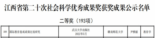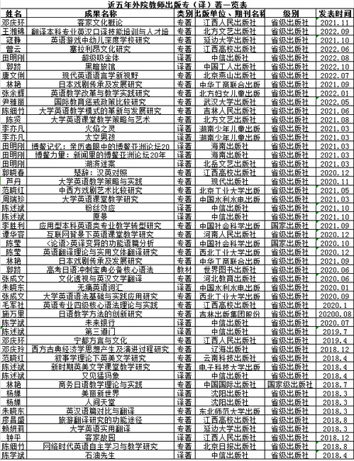 3.科研水平稳步提升。学院重视科研和教学相结合,教师的科研水平得到了稳步提升。近五年,学院教师主持国家社科基金项目2项、教育部人文社会科学研究项目2项、教育部国际中文教育研究项目1项,江西省社会科学规划项目6项。教师发表C类以上高水平论文27篇,其中,A类2篇,B类3篇,出版专著50余部。尹雅丽老师荣获2023年江西省社会科学成果“二等奖”。