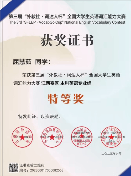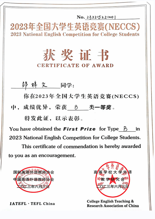 学院以学生学习能力为核心,以专业学科竞赛为导向,构建学科竞赛体系,以赛促练,激发学习热情,构建优良学风,夯实专业涵养。学院依托“挑战杯”大学生课外学术科技作品竞赛,“外研社·国才杯”系列外语竞赛,全国大学生英语竞赛,“人民中国杯”日语国际写作、翻译、词汇大赛,全国高校商务英语综合能力大赛、“华文杯”专业教学技能大赛等,着力提高学生参与竞赛和学习外语的积极性。通过学生社团——外国语协会、日语协会和翻译协会,分别组织承办好五大实训平台的对应赛事,进一步提高教育实践技能,近三年来学生参加省级以上学科竞赛获奖达200余人次。