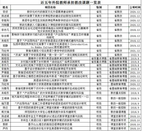 此外,学院教师注重将科研成果反哺教学,不断将本领域前沿学术成果融入日常教学,逐步推动教学模式的创新,促进科研成果与教学的融合。近五年,学院教师承担教育部产学研项目3项、江西省本科教育教学教改项目19项、校级教改课题9项。